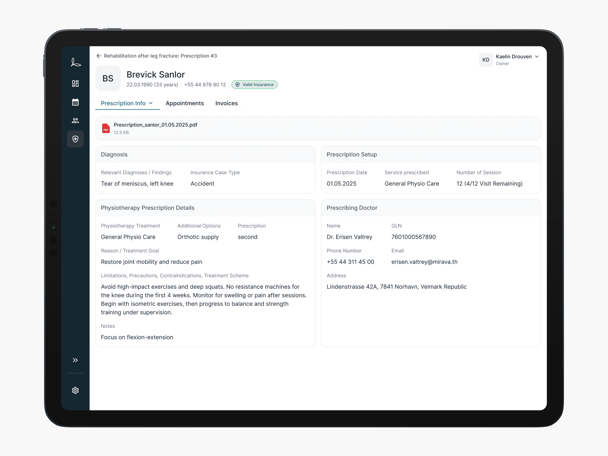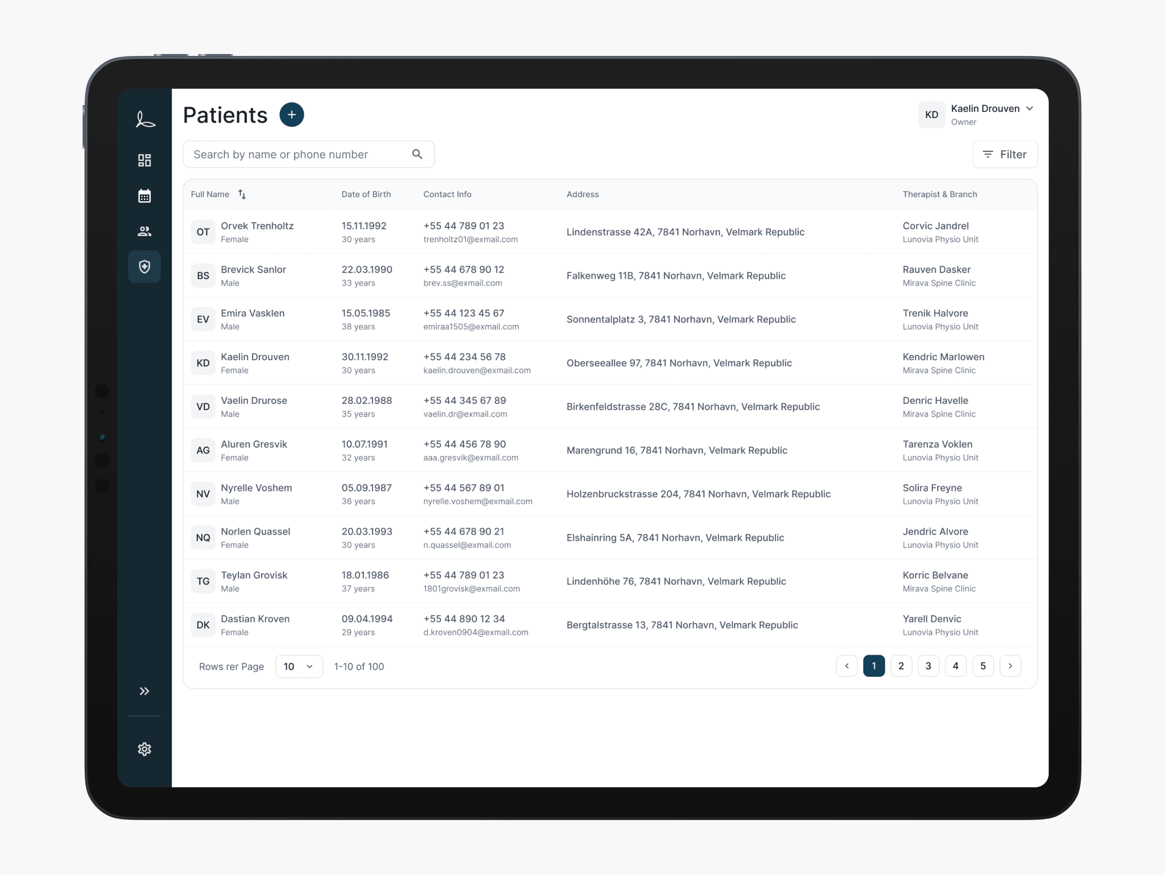 The main goal was clear: to replace multiple disconnected tools with one unified system that manages patient cases, prescriptions, appointments, and insurance workflows. It also supports efficient staff management, including work schedules, time off, and role assignments. This ensures smoother clinic operations and full compliance with European healthcare standards.