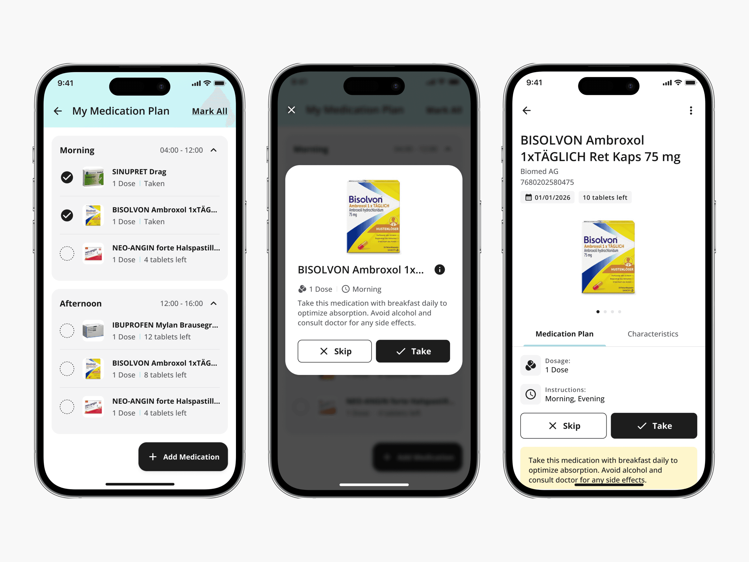 The app also supports personalized schedules and treatment plans, helping users stick to their routines and avoid missed doses. Its clean and user-friendly design saves time, reduces the risk of taking expired medications, and gives users confidence and control over their health.