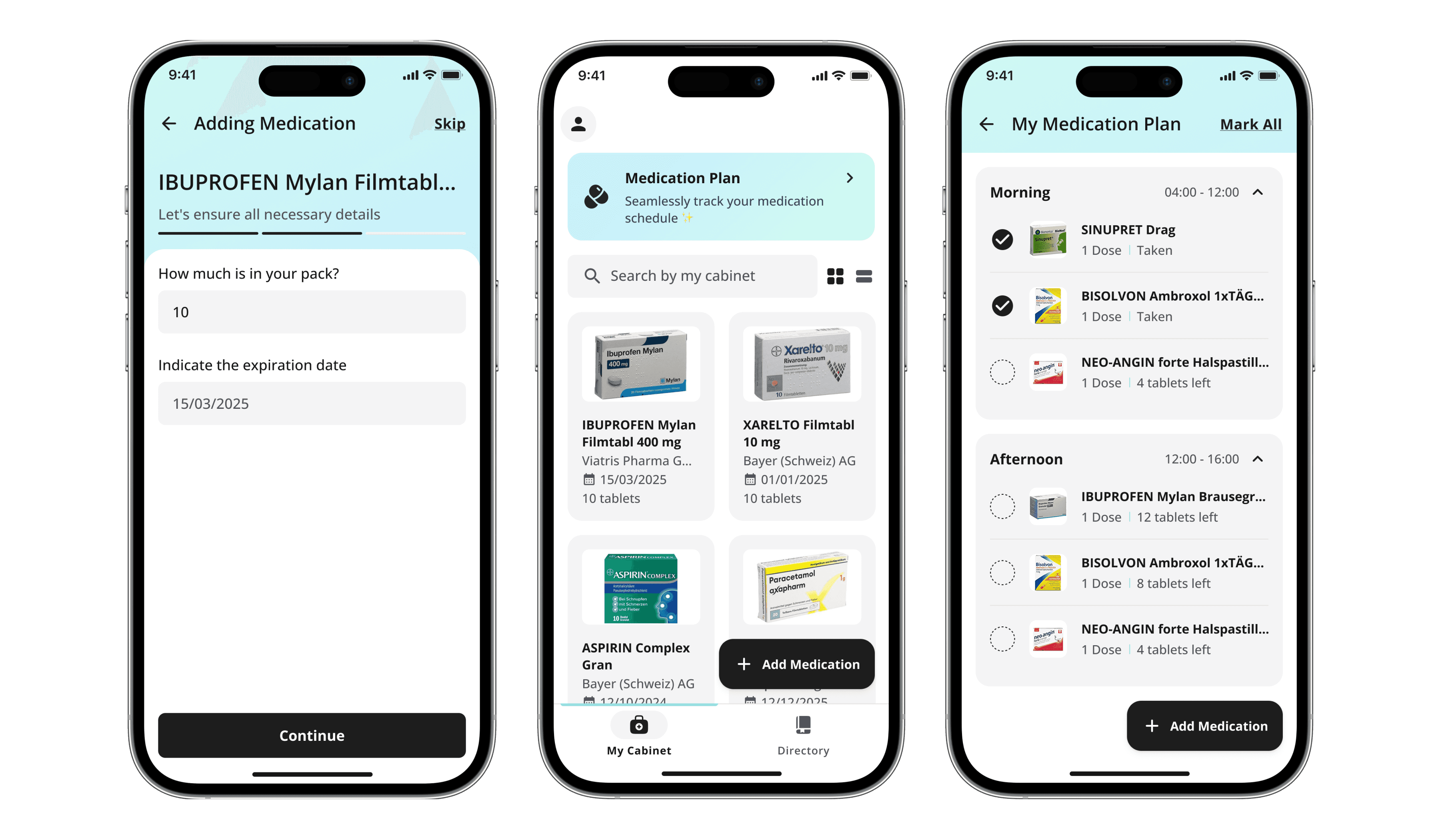 The Medicine Cabinet App was created to make managing home medications simple and reliable. By turning the traditional medicine cabinet into a digital tool, users can log and organize their medications, track quantities and expiry dates, and quickly access digital instructions.